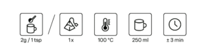 Add 2g/1 teaspoon or 1 teabag to 250 ml of boiled water. Let it brew for 3 mins and remove the tea or pour the tea out.